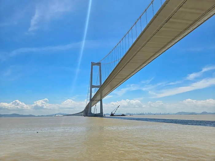 考虑到珠江口地区频繁的台风,工程团队开发了一种新的气动外形设计,将大跨度整体钢箱梁悬索桥的颤振临界风速提升至世界最高的88米/秒,能够抵御达到17级的台风……