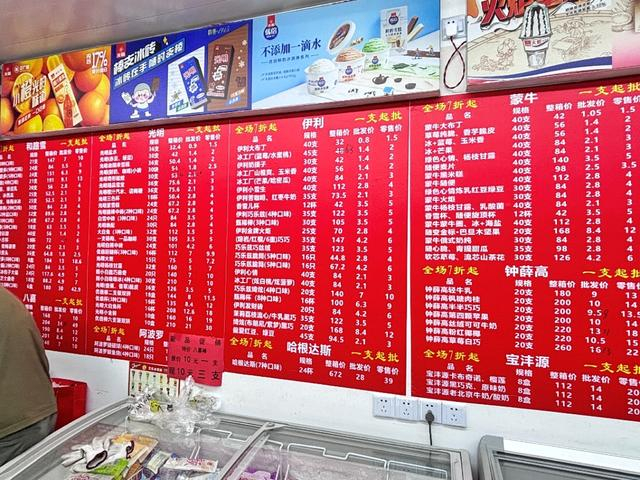 傍晚,走进位于国和路1048号的国和冷饮批发店,首先映入眼帘的便是一张巨大的红底白字价目表,店内所有冷饮的价格一目了然。上百种冷饮在冰柜中整齐地摆放着,琳琅满目,供人随意挑选。