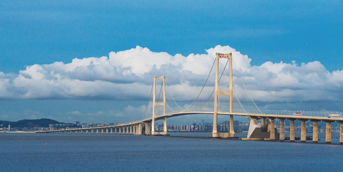 在美学设计方面,贯彻“平衡、和谐、简洁、大气”的建筑设计理念,深中通道全线采用统一的晶体切面建筑元素,注重海中长桥的韵律感,提升了工程品味。