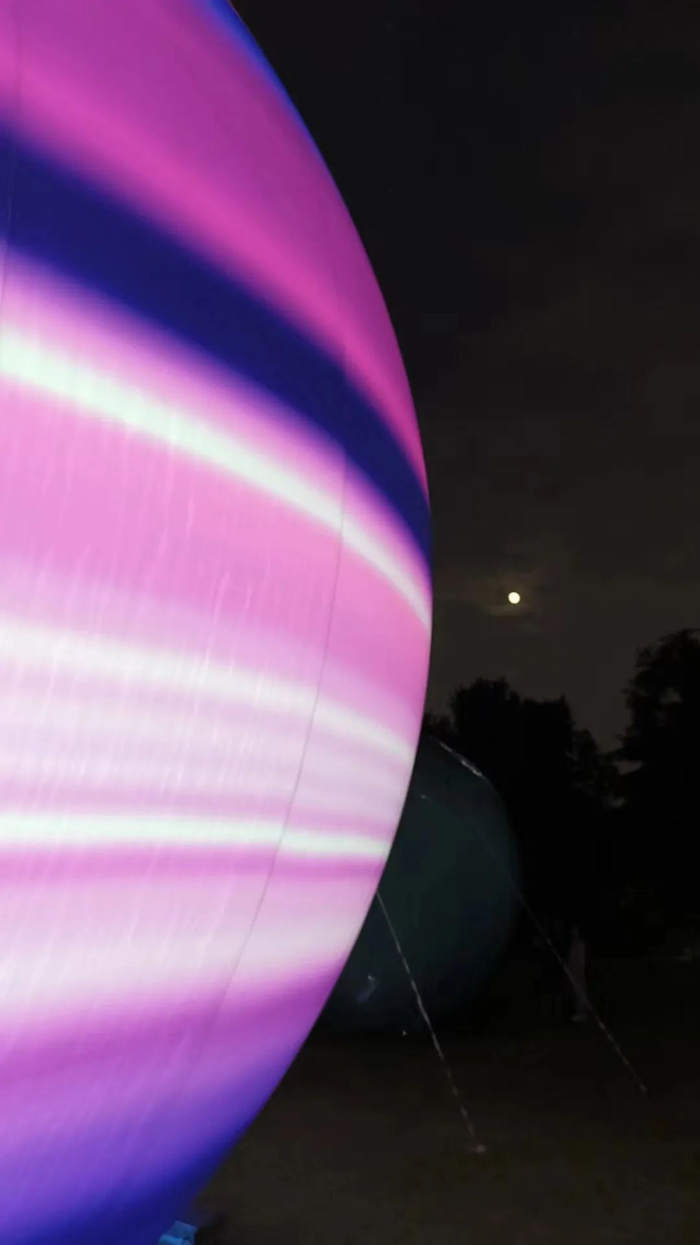 复兴公园的巨大星球和远处星空下的月亮一大一小相映成趣@月芽儿