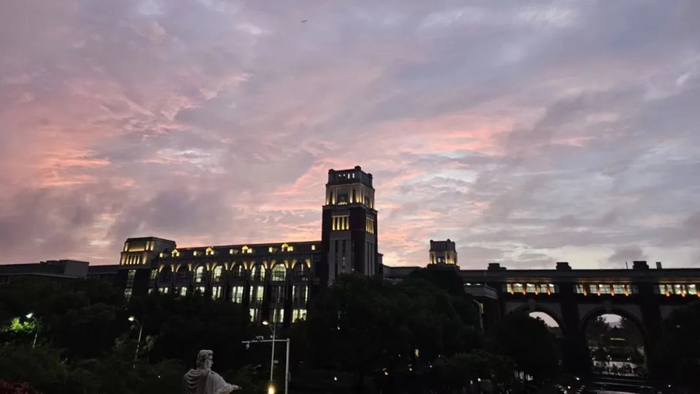 走出图书馆看到雨后晚霞@小虎
