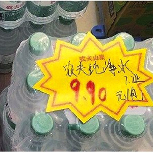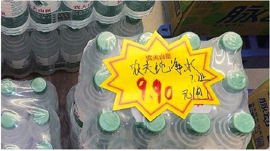 “水需要带一包吗?现在有优惠很合适。”在济南市泺源大街一大型商超内,售货员正介绍着商品。黄色的降价标签很是显眼,2升装的农夫山泉2桶售价6元,5升装的农夫山泉8.5元/桶。此外,在货架上摆放的小瓶农夫山泉也有不同程度降价。其中,550毫升农夫山泉饮用纯净水售价1.8元/瓶。