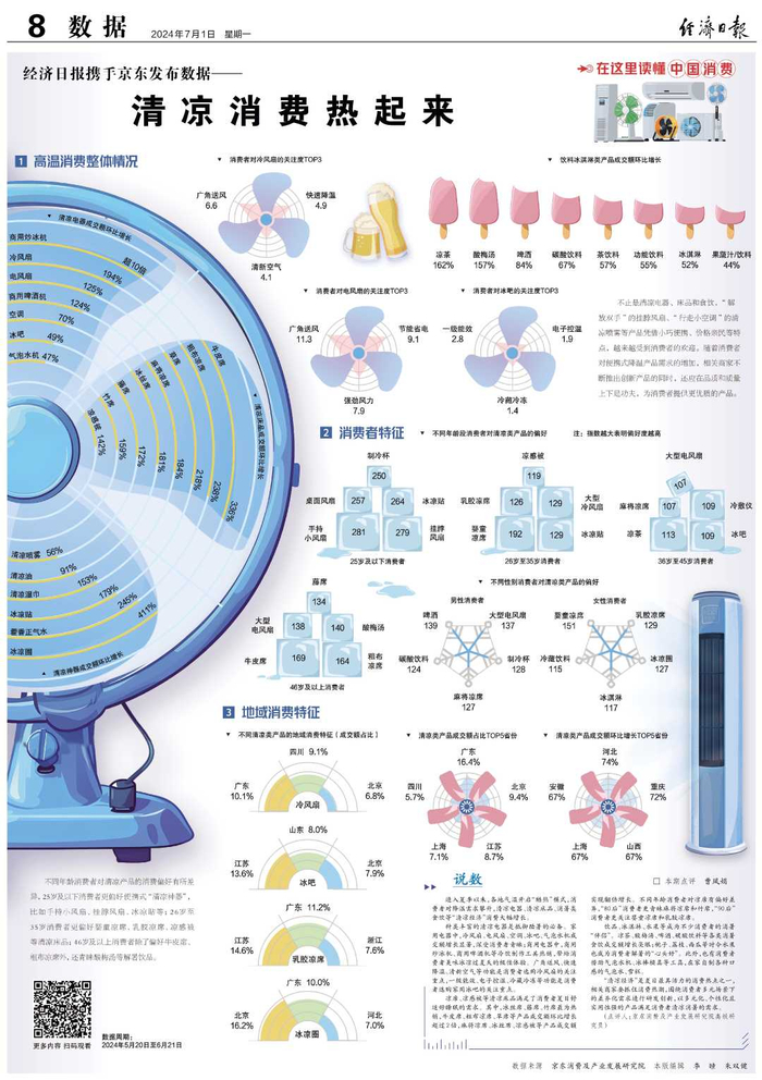 进入夏季以来,各地气温开启“酷热”模式,消费者对降温需求攀升,清凉电器、清凉床品、消暑类食饮等“清凉经济”消费大幅增长。