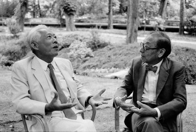 贝聿铭与赵无极在巴黎杜乐丽花园,约1990年。由Marc Riboud拍摄。
