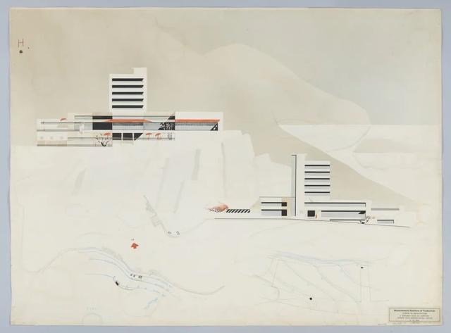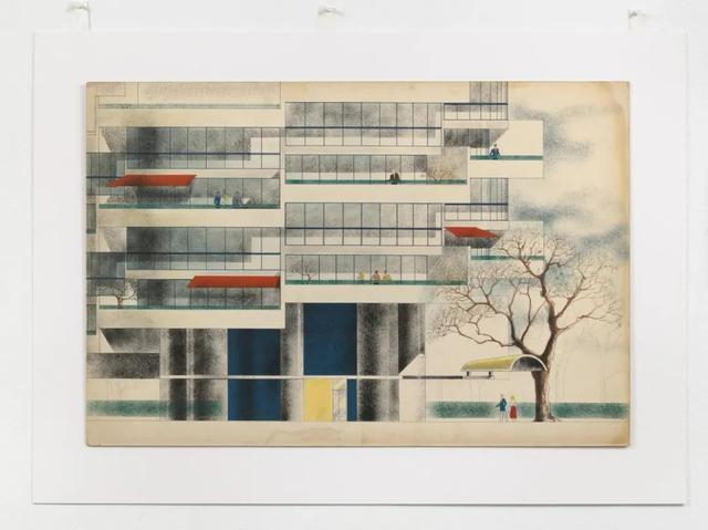 贝聿铭,麻省理工学院四年级习作设计,《一所香港银行家会所》,1938至1939年 © MIT Museum,由麻省理工学院博物馆提供