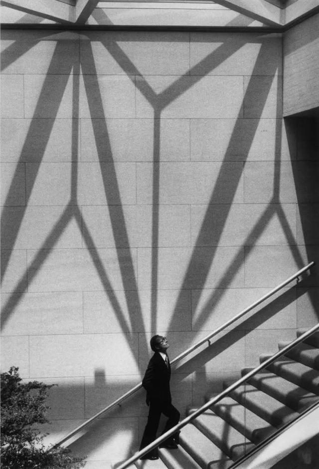 贝聿铭走在华盛顿特区国家美术馆东馆的楼梯上© Marc Riboud:Fonds Marc Riboud au MNAAG:Magnum Photos