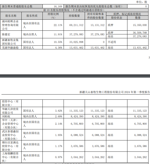 2021年9月公告显示,因其原控股股东天山农牧业发展有限公司(简称“天山农牧业”)向湖州皓辉合计11.4亿元借款到期未还本付息,湖州皓辉于2021年6月向昌吉州中院申请了强制执行;鉴于天山农牧业及其全资子公司呼图壁县天山农业发展有限公司合计持有的公司69,211,312股股份为该笔借款质押物,昌吉州中院于2021年7月发布司法拍卖公告,于2021年8月30日-31日实施司法拍卖,由竞买人湖州皓辉竞买成功。