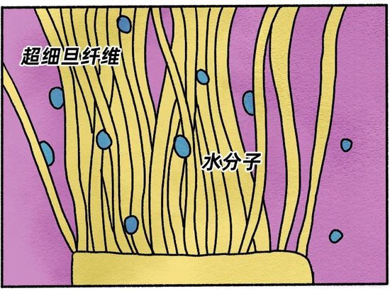 水分子被夹在纤维之间,但不会被纤维吸收。这样的好处就是一拧,就能挤干大量水分;一摊开,残留的水分也会快速蒸发。