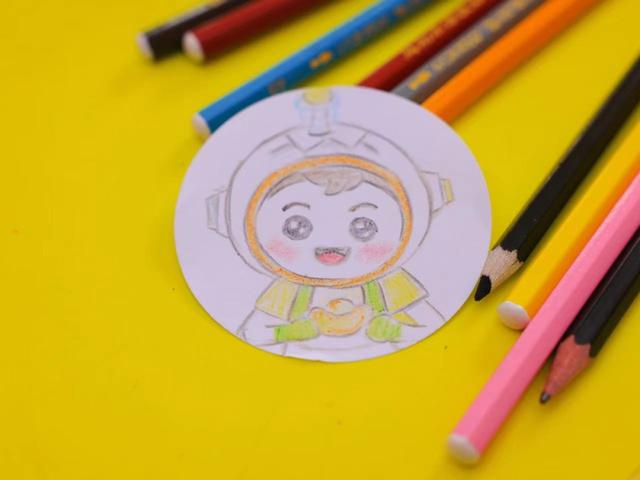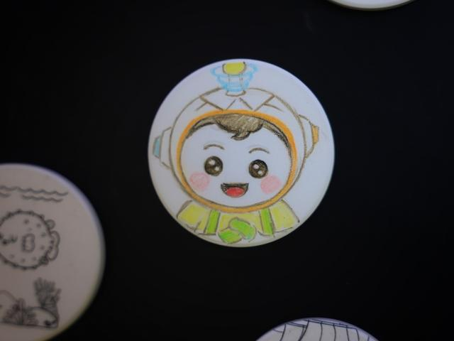 从最简单的徽章画制作开始,只需选好图案,确定好颜色,就能拿起彩绘笔进行创作。在手绘专用纸上,用深色彩笔勾勒出轮廓,再补充细节,最后进行上色。这时,徽章的内容已经确定好,下一步,就要用专业的机器制作来徽章。