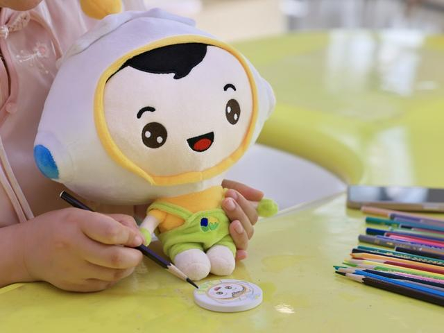 除了徽章画制作,小鑫还体验了冰箱贴制作。与徽章画不同的是,制作冰箱贴时,需要将图案画在石膏上,选中心仪的图案就可以尽情创作了。绘画完成后,工作人员会在石膏底部贴上一层磁吸膜,这样就能牢牢吸在冰箱上了。