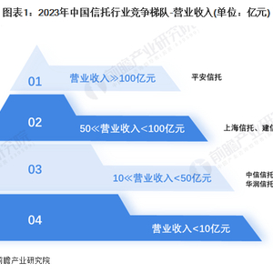 按营业收入规模划分,中国信托行业划分为4个竞争梯队。平安信托处于行业的第一梯队,营业收入超过100亿元;上海信托和建信信托处于行业的第二梯队,营业收入在50-100亿元之间;中信信托、兴业信托、华润信托、华能信托等处于行业的第三梯队,营业收入在10-59亿元之间;长安信托、建元信托等处于行业的第四梯队,营业收入在10亿元以内。