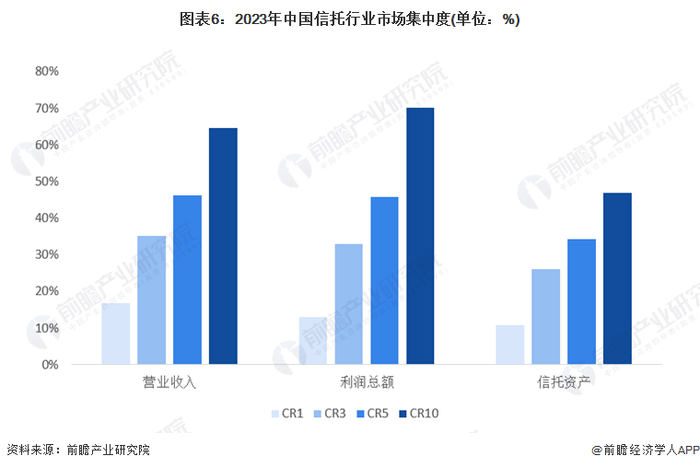 中国信托行业市场集中度