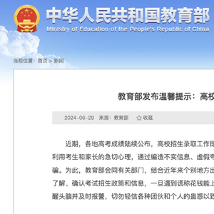 教育部还提醒,应认准“官网”标识,通过官方发布、认证的网站确认录取信息,收到录取通知信息时要注意甄别。