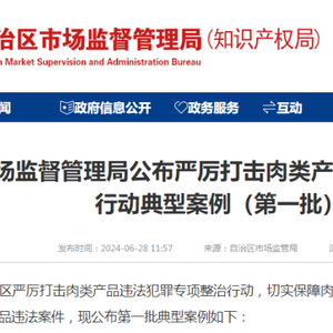近日,自治区市场监督管理局网站公布严厉打击肉类产品违法犯罪专项整治行动典型案例(第一批)。
