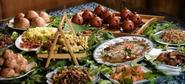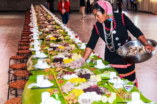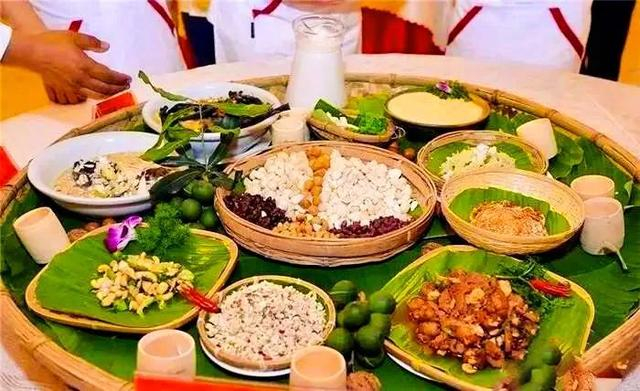 特色:德昂族的竹宴席以竹子为主要元素,包括酸笋煮鸡、酸笋煮鱼、黄笋丝炒豆米等“竹菜”,配以竹子烧火、竹甑蒸饭等独特方式。这种宴席形式独特且富有民族特色。
