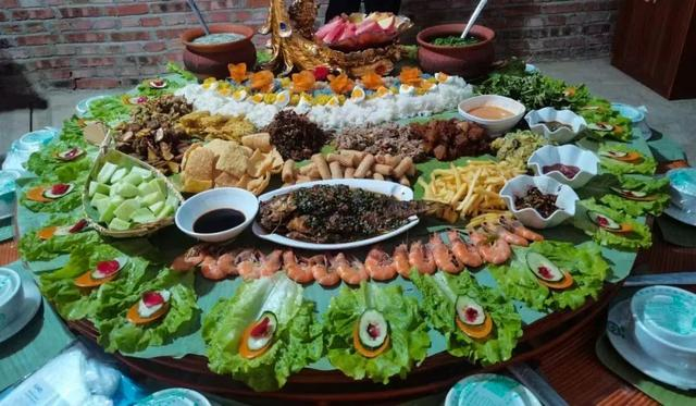 特色:耿马土司宴的特色在于其荤素搭配合理,菜品丰富多样,包括炖全牛、牛撒撇、孟定酸肉等经典美食,尽显旧时土司的奢华与尊贵。推荐理由则是这道菜宴不仅能让人品尝到地道的耿马美食,还能深刻体验到傣族独特的饮食文化和历史传承,是一次难得的美食文化之旅。