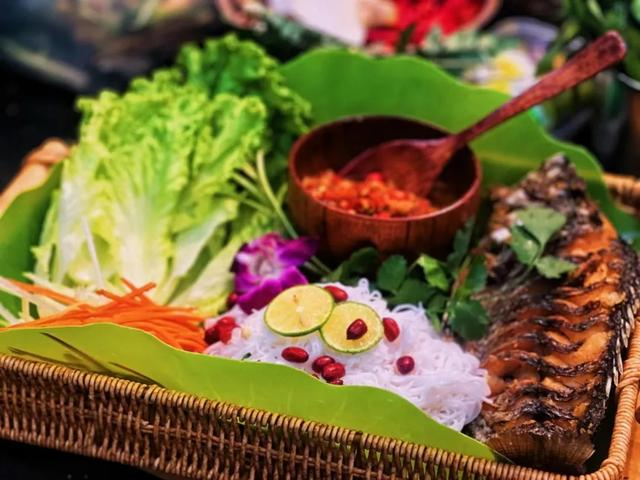 特色:香茅草烤鱼是一道传统的傣族风味菜肴,以罗非鱼为主要原料,配以香茅草、青辣椒等调料腌制后烤制而成。其特色在于香茅草的独特香气与鱼肉的鲜美相结合,口感香、酥、鲜,辣味适中。