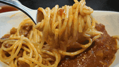用叉子挑起沾满酱汁的面条,番茄酱汁的酸味刺激口水分泌,混合香浓的肉酱,面也很有嚼劲分量足,调味好,酱汁多,吃起来特别过瘾。
