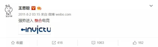 “国民老公”王思聪带着老爸王健林给的5个亿,进入电竞行业,于2011年8月收购了CCM战队,并重组为IG电竞俱乐部。王思聪还发布微博高调宣称:“强势进入,整合电竞”。
