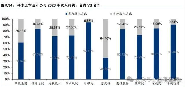 短期地域特征仍然较强,加快建设全国统一大市场背景下有望逐渐打破区域壁垒。目前, 设计咨询行业的管理仍呈现出多头管理的局面,由国家发改委管理工程咨询,由住建部归 口管理全国勘察设计,由商务部管理涉外工程设计和工程承包,由国资委和多个专业部门 (如水利部、交通部等)及各省、市、自治区分别对各自所属的工程勘察设计咨询单位实 现归口管理,一定程度导致地域割裂,区域壁垒仍在一定程度上影响行业集中度提升,2023 年 10 家设计企业中仅苏交科的江苏省内业务收入占比低于 60%且低于省外业务,近三年行 业内各家公司省内业务收入占比大多处于提升状态。我们前文统计也显示,短期低空经济 发展仍然呈现出各地“千帆竞发”的态势,考虑规划设计行业仍然存在较强的地域特征, 因此当地规划设计龙头有望占得先机。