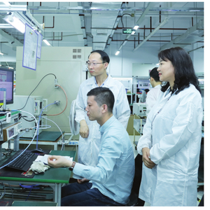 赵云鸿(右一)在深圳国人科技研发中心实验室了解工作开展情况。(南宁产投集团供图)2022年初,南宁产投集团实施跨省并购全球通信射频器行业龙头企业深圳国人科技股份有限公司,时任南宁产投科技创新投资有限责任公司董事长、总经理赵云鸿参与并购工作。当年4月1日,赵云鸿代表科创投公司与国人科技成功签署增资协议,积极推动项目产能转移和升级改造落地南宁,于同年底实现了南宁国人通信产业园一号厂房顺利上线投产。这是赵云鸿在科创投公司任职期间招商引资推动项目落地的一个缩影。
