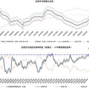 中国租售比的趋势:中国的利差大约在今年一季度后开始进入正值区间,且仍有向上运行的趋势,同时名义租售比正逐渐接近过去二十年历史区间的顶部。虽然我们倾向于认为租售比触及历史顶部后或可得到一定的支撑,但对于利差是否会继续趋势性的扩大,以推动名义租售比突破历史区间(隐含房价呈现进一步调整),我们认为仍很大程度上取决于后续的市场管理。