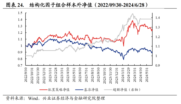 截至2024年6月30日,兴证金工择时模型给出股票谨慎乐观,债券乐观的信号,因此战术组合中低配股票权重,并配置长久期债券。组合于7月第一个交易日收盘即2024年7月1日进行调仓。
