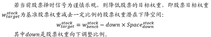 若当前股票择时信号为看平,则不改变股票权重,股票目标权重等于原基准权重。