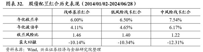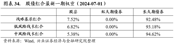 截至2024年6月30日,兴证金工择时模型给出股票谨慎乐观,债券乐观的信号,因此战术组合中低配股票权重,并配置长久期债券。