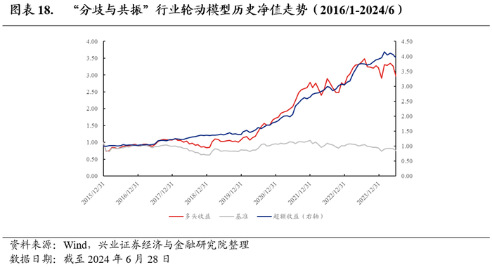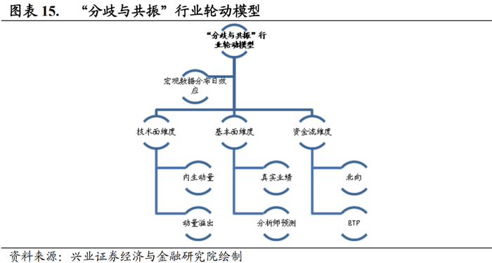 在这一部分,我们将对“分歧与共振”行业轮动模型进行简要介绍。我们借鉴了宏观策略方向大量的思想,从分歧与共振的角度构建了一个综合技术面、基本面、资金流和宏观维度的稳健型行业轮动策略。