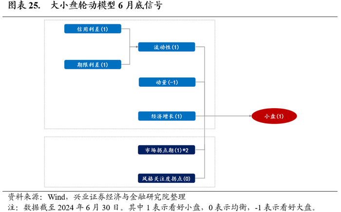 结构化模型6月底给出小盘占优的信号。从具体风格驱动因素看,大部分维度相对看好小盘。