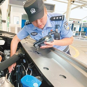 车管所南区分所民警在查验新车