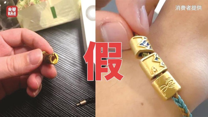 堪称孪生的假证书、足以乱真的镀金工艺……就这样,一款出厂价十几元的仿金制品,在平阳县玉福金银厂家的协助下,假产品配上假证书,在网络主播的话术中,最终摇身一变成了给消费者送“福利”的“真金白银”。 据央视网公众号