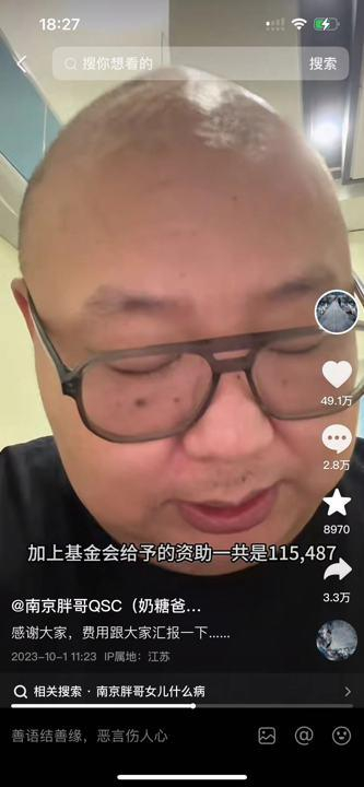 孩子出生后几天就被确诊患有先天性心脏病,需ECMO治疗,每天花费近1万元。一家人东拼西凑拿出11万元,却不够应付治疗费,不得不向外人张口。2023年9月26日,邱绍春忽然在抖音发布了一条求助视频,他在镜头前泪眼婆娑:“实在是没办法了,决定发起一次众筹……”
