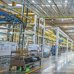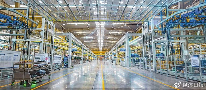 太重智能高端液压挖掘机产业园装配车间,上千个零部件通过空中走廊和地面运输机器人汇聚,平均每4分24秒就能装配完成一台挖掘机。牛帅摄(中经视觉)