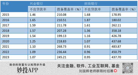 净利润与招行有更大差距,更多源于客群与风控能力等原因带来的资产质量问题。不良贷款要么直接核销,从而冲减利润;要么通过拨备来覆盖,而计提拨备同样会减少利润。招行零售客群优质,风控能力也不错,资产质量相对较好,兴业银行在上市银行中也是资产质量不错的一家,不过相对招行还是弱一些。