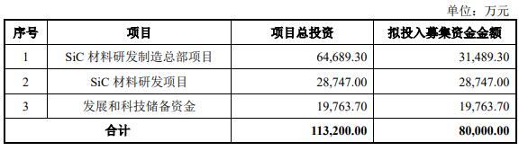 志橙股份原拟募集资金80,000.00万元,用于SiC材料研发制造总部项目、SiC材料研发项目、发展和科技储备资金。