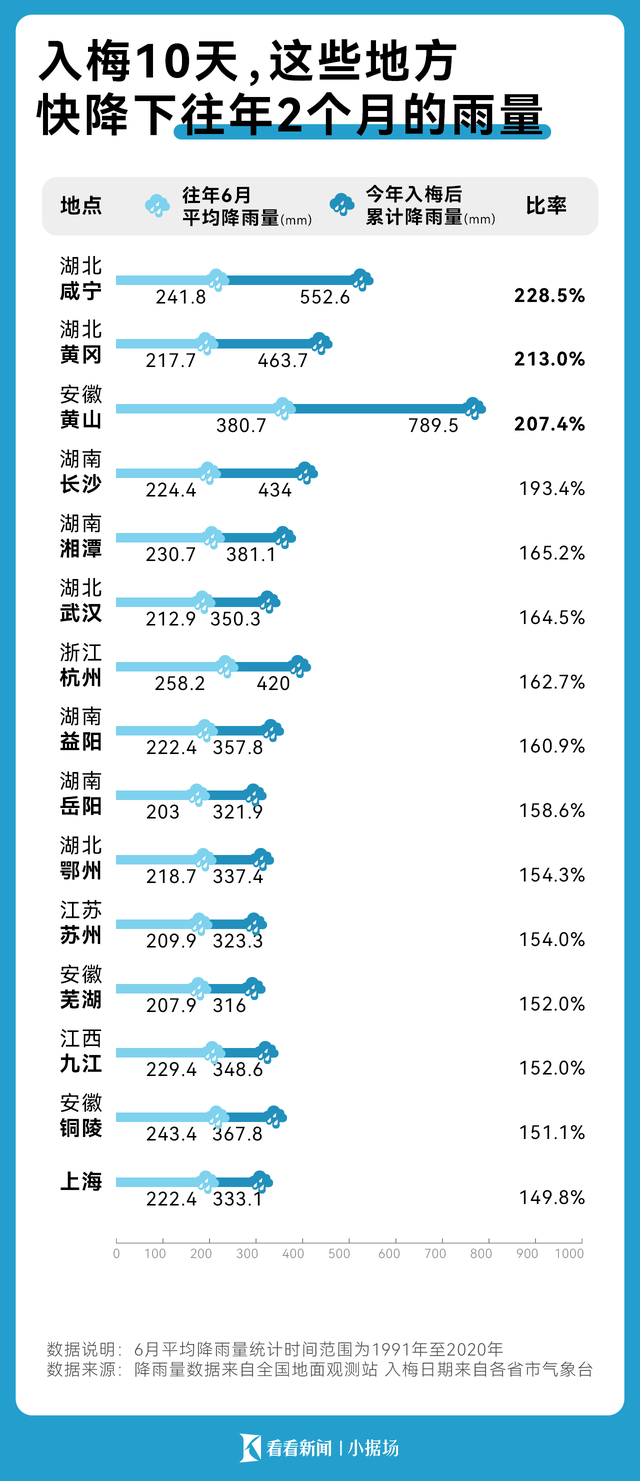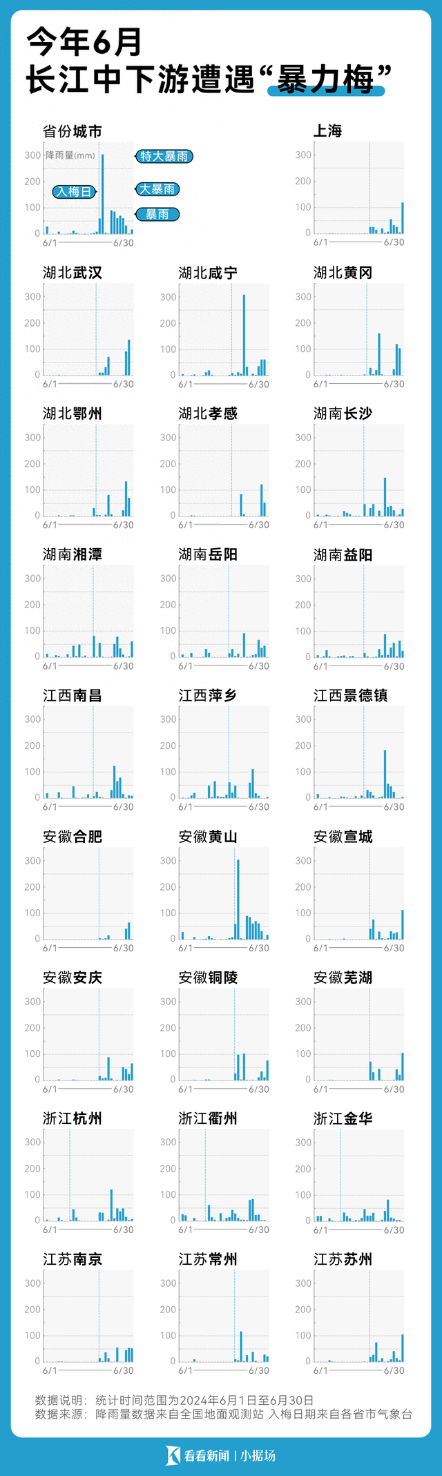 小据场丨这个梅雨季,长江中下游下了多少雨?