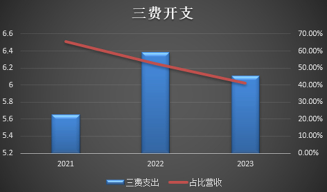 2021年-2023年,博泰车联网的三费支出分别是5.65亿元,6.38亿元、6.11亿元,占总营收比例为65.3%、52.4%和40.9%。从趋势上来看,博泰车联网三费占营收的比例在下逐步下降。2023年博泰车联网的研发费用大幅下降,导致整体亏损额收窄。