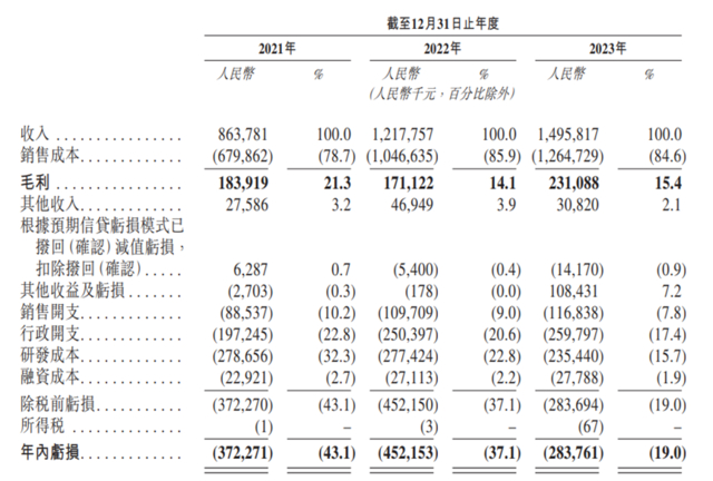 2021年至2023年期间,受益于产品销量增长,博泰车联网的年度收入获得连续高增长,分别为8.64亿元、12.18亿元和14.96亿元,复合增长率达到32%。