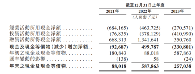 截至2023年年底,博泰车联网的现金及现金等价物余额为2.57亿元,按照2023年博泰车联网的经营现金流净额计算,不足以维持一年,不过公司在6月已经完成一轮10.47亿元人民币融资,因此公司现金流仍然充沛。