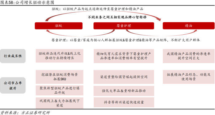 持续挖掘个性化细分需求/场景,已打造“婴童护理+驱蚊+精油”产品矩阵。