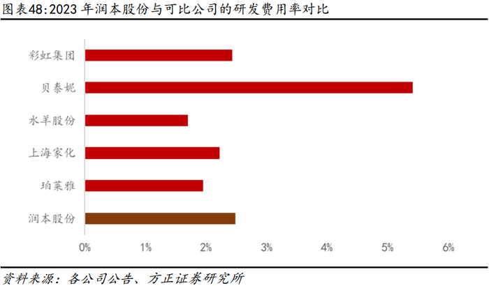 公司将研发创新能力置于公司的核心战略地位,为产品研发和技术创新提供充分支持。2023年公司共有研发设计人员124名,研发团队人员充足且团队成员专业背景多元,有助于公司不同类别的产品研发。公司根据产品开发的进度和需要,为新产品开发提供充足的资金保证,积极推动技术成果转化和产业化。23年公司研发费用率为2.49%,在同业可比公司中位居前列。通过全方位整合行业研究资源,公司逐渐形成理论与实践有机结合的高效研发体系。