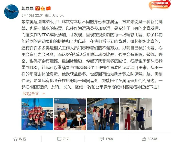 郭晶晶在接受采访时也表示
