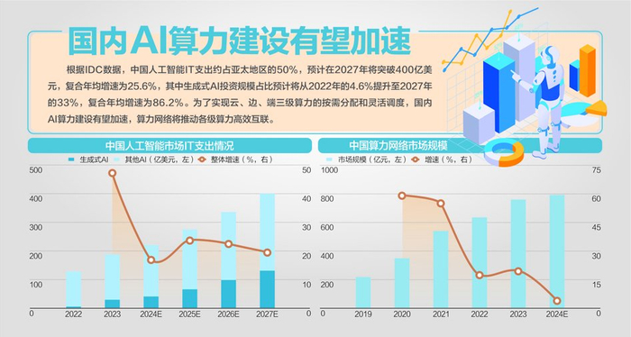 在算力中心标准方面,《指南》提到,要规范面向人工智能的大规模计算集群、新型数据中心、智算中心、基础网络通信、算力网络、数据存储等基础设施的技术要求和评估方法,包括基础设施参考架构、计算能力评估、技术要求、稳定性要求和业务服务接口等标准。