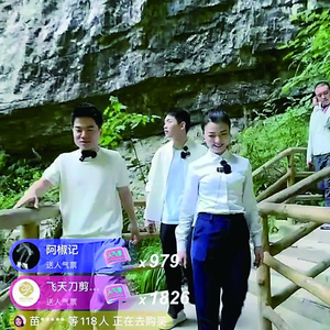 ◀董宇辉在武隆天生三桥直播