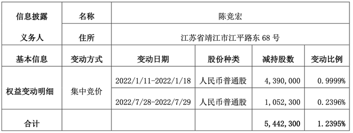 公告显示,陈竞宏的实际减持期间为2022年1月11日-18日、2022年7月28日-29日,分别减持了439万股、105.23万股。