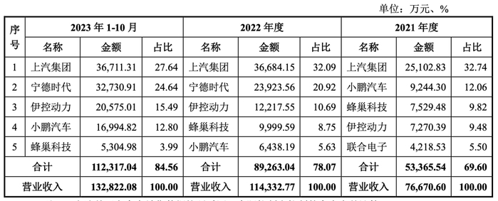 回复函显示,江苏恒义收入增长主要是新能源电池箱体行业市场需求持续高增长,子公司恒义轻合金产能扩张带动收入增加,2018年进入宁德时代合格供应商体系后,2022年开始对宁德时代大规模供货等所致。2022年、2023年1-10月江苏恒义对主要客户上汽集团、宁德时代、伊控动力、小鹏汽车的销售额总体上有较大幅度增加,与第一大客户上汽集团合作稳定。