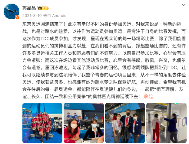 郭晶晶在接受采访时也表示