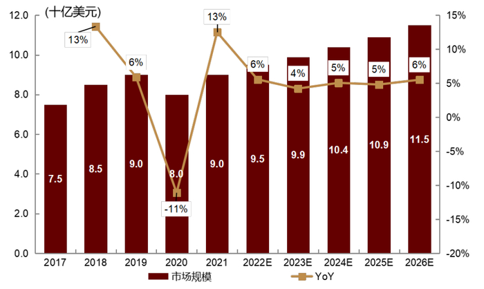图表2:全球隐形眼镜零售市场规模(2017-2026E)